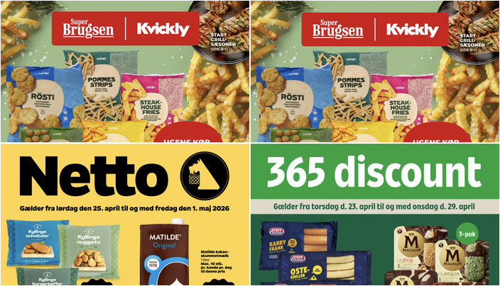 Hos SuperBrugsen kan du få dybfrost Coop kartofler i forskellige varianter til kun 10 kr. pr. pose. Vægten varierer fra 450-1000 g. Tilbuddet gælder fra fredag den 24. april til torsdag den 30. april 2026.